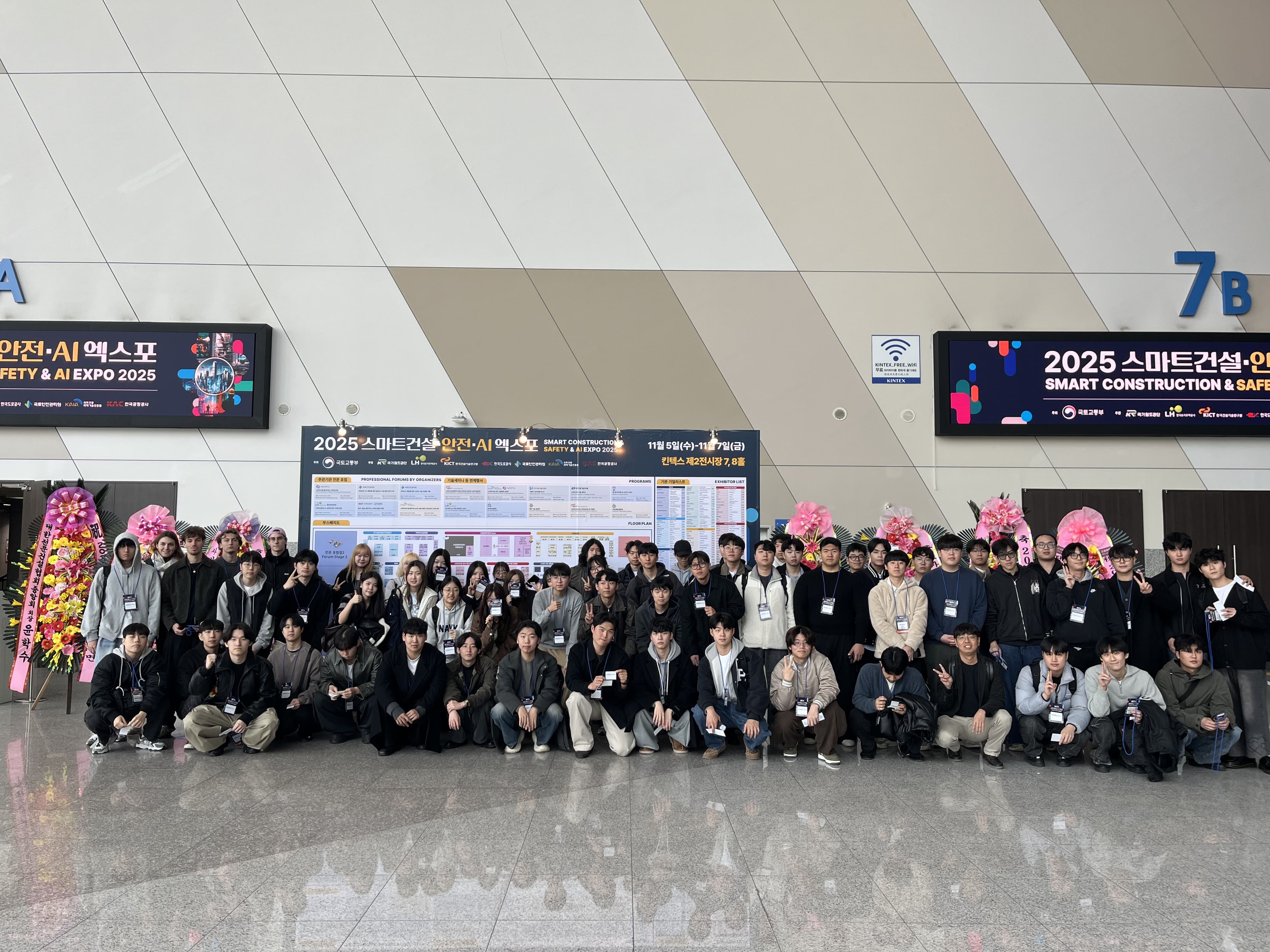 건설환경공학과 학부생들이 2025년 11월 5일(수)부터 7일(금)까지 일산 킨텍스 제2전시장에서 열리는 2025 스마트건설·안전·AI 엑스포(Smart Construction & Safety & AI Expo 2025) 에 참여하였습니다.